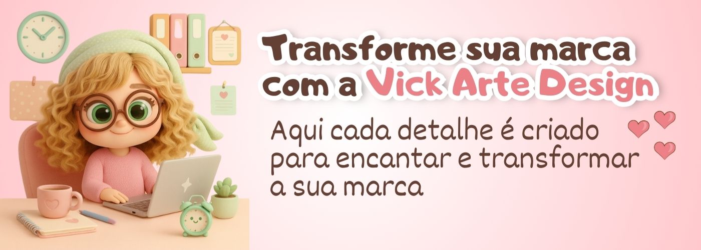 Na Vick Arte Design você encontra packs digitais, identidades visuais e papelaria impressa criados
