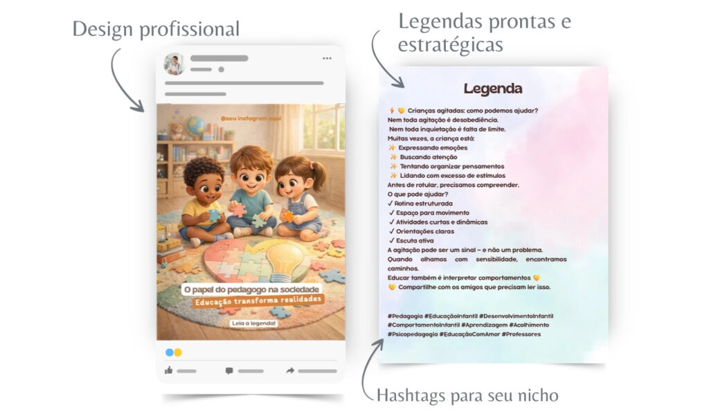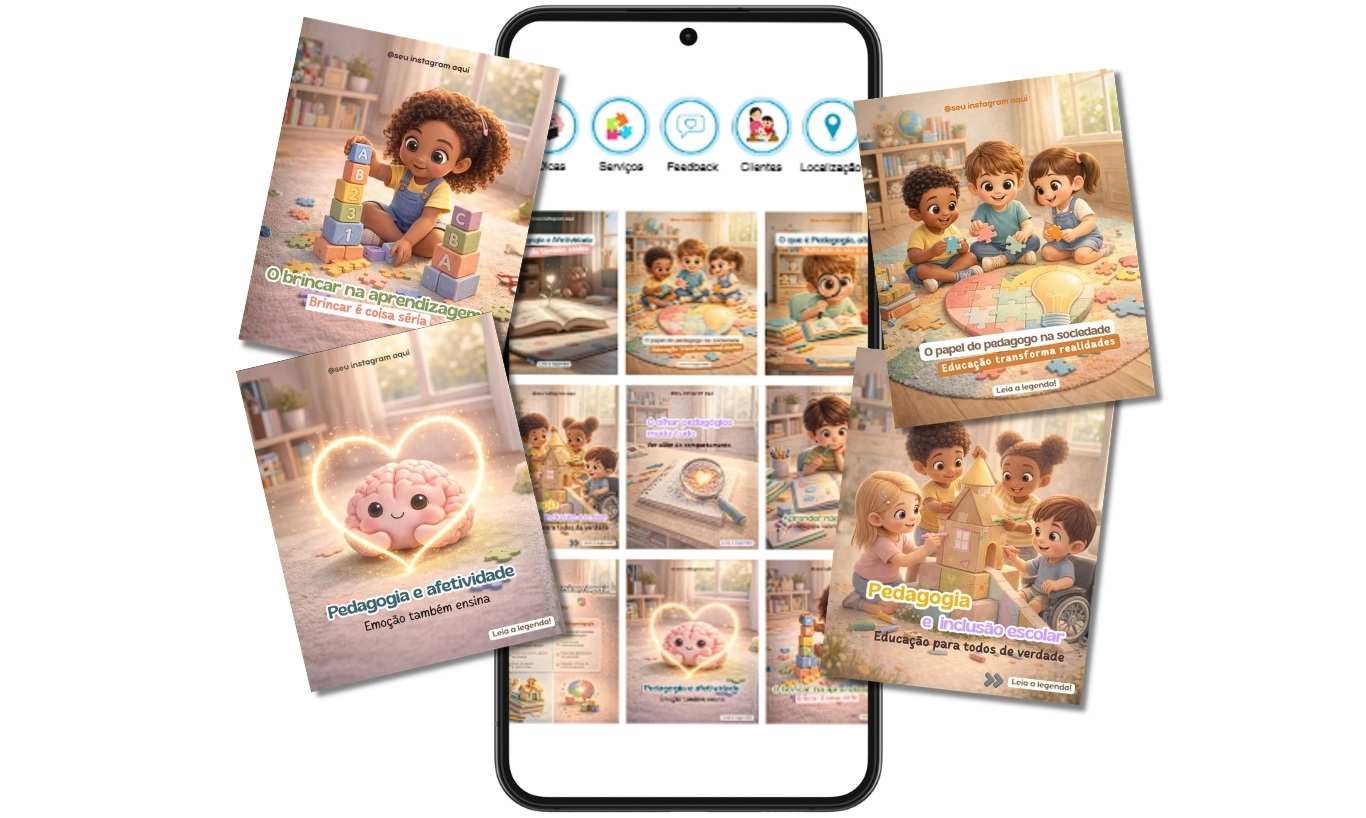Sim! Basta você baixar o aplicativo do Canva e acessar o pack de pedagogia para criar suas postagens direto pelo seu celular.