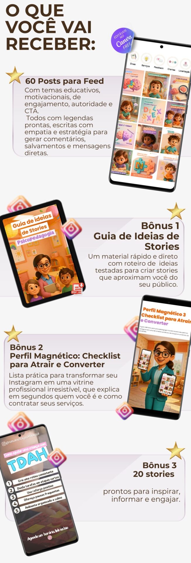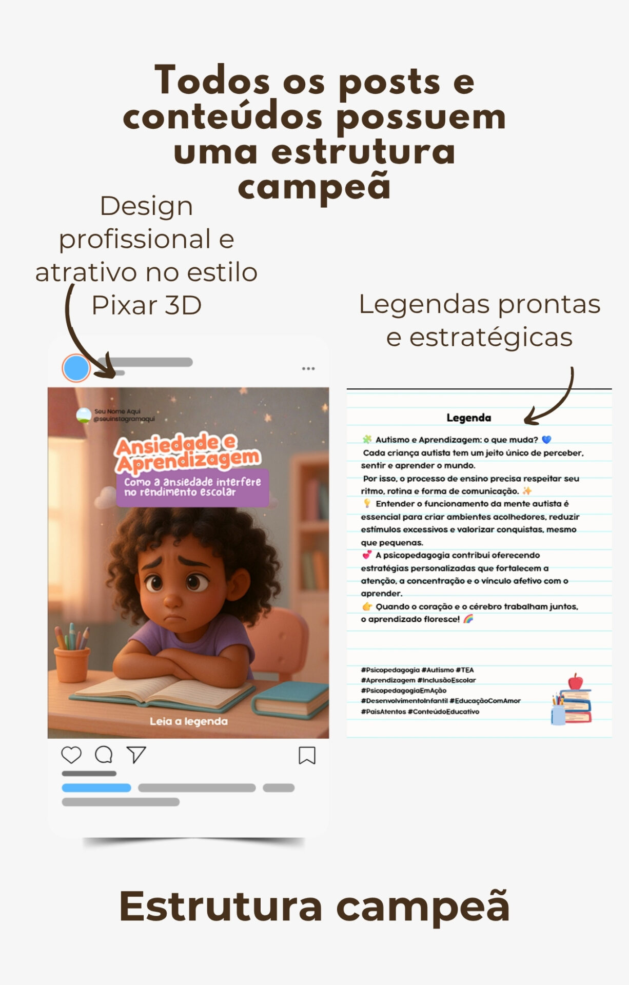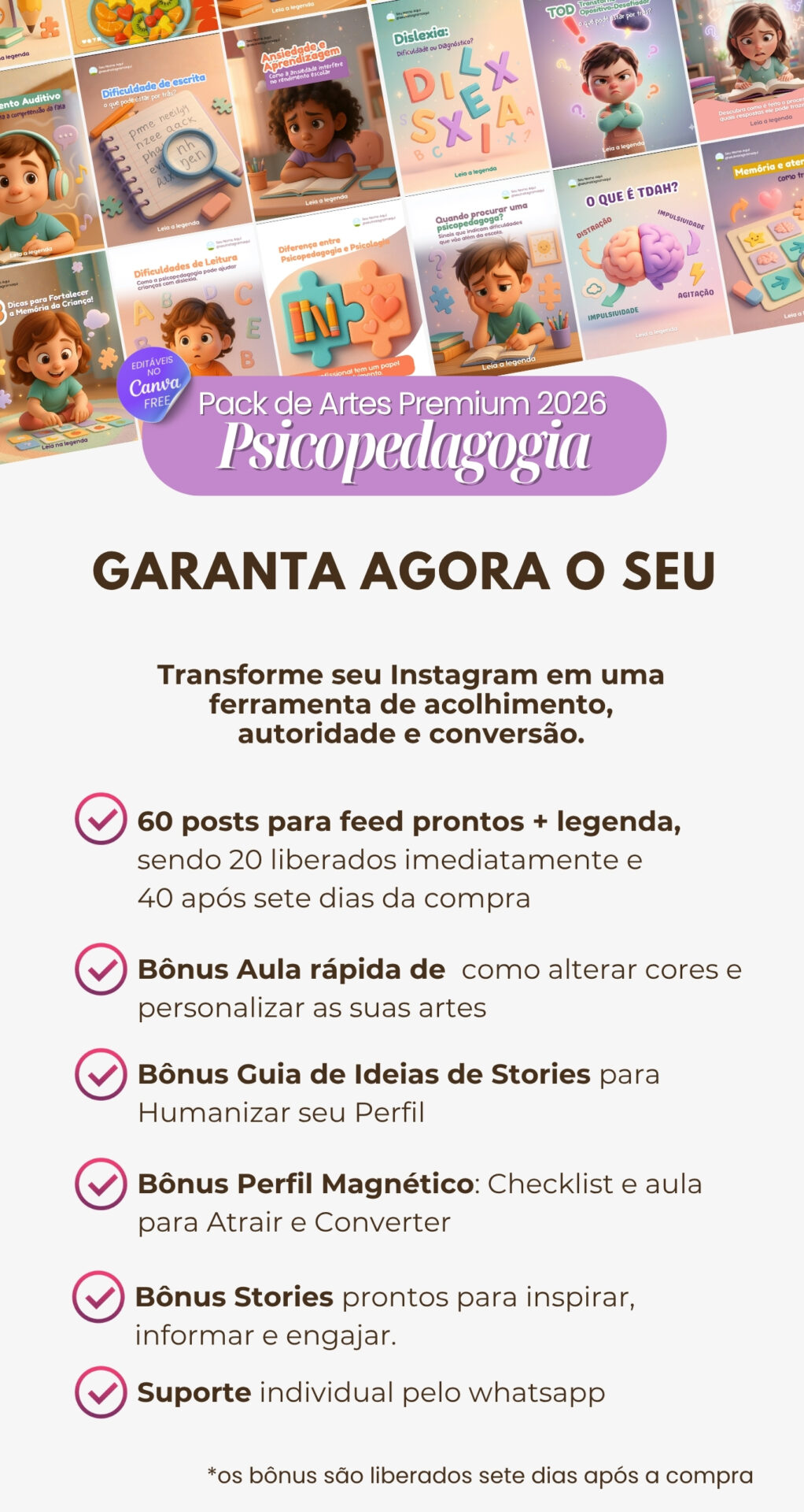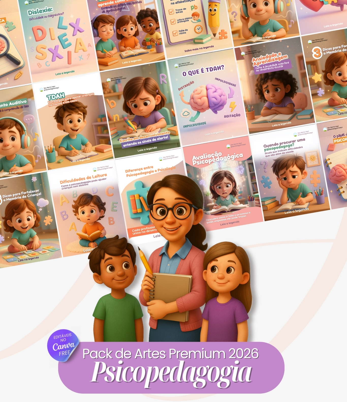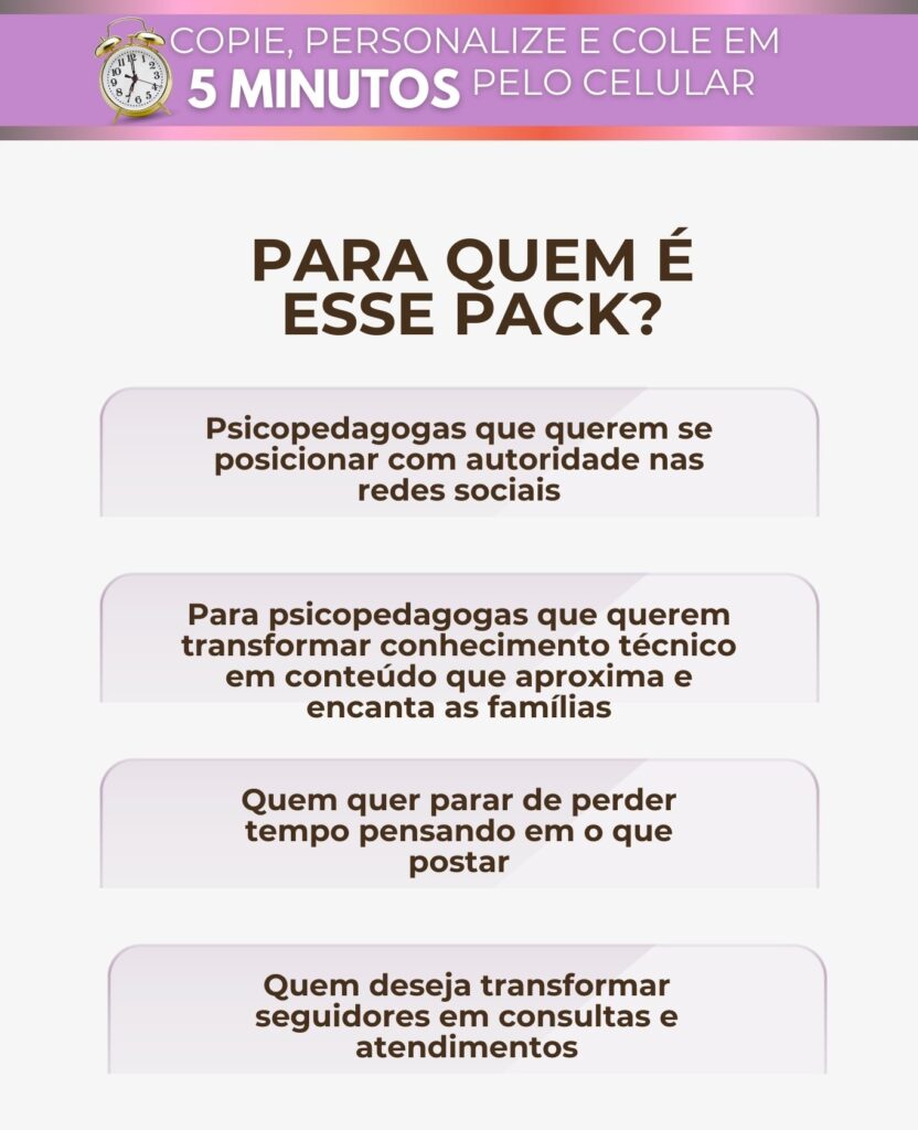Conteúdo 100% pronto para Psicopedagogas que querem atrair pais, acolher famílias e vender no Instagram.