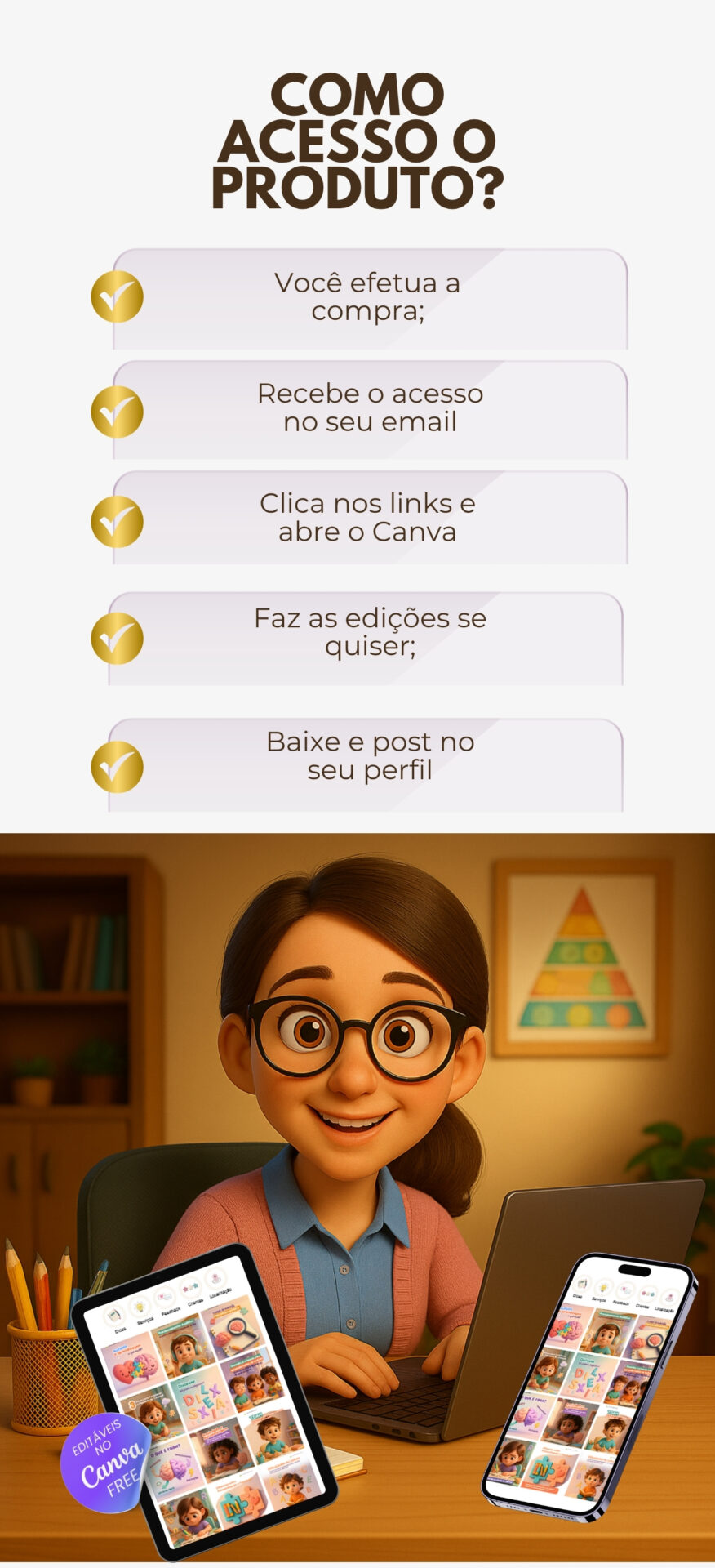 60 postagens estilo 3D + legendas prontas + ideias de Stories + bônus exclusivos para posicionar você como referência e aumentar sua agenda de atendimentos.