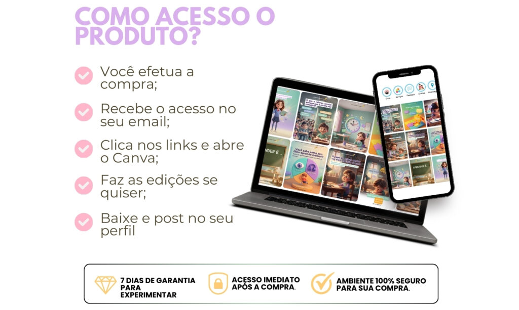 Você pode efetuar a compra sem nenhum risco e no prazo de até 7 dias, se você ver que não é para você, nós devolvemos o seu dinheiro integralmente, simples assim. Ou seja, você não corre nenhum risco.