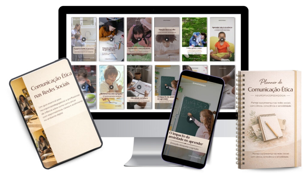 Os conteúdos explicam a aprendizagem infantil de forma acessível, respeitosa e baseada em ciência, ajudando famílias a compreender processos sem diagnósticos precipitados.